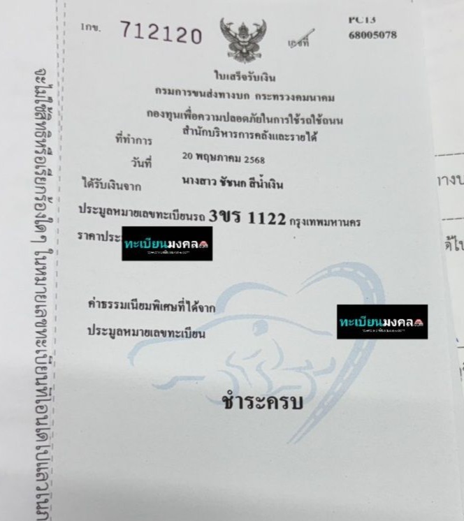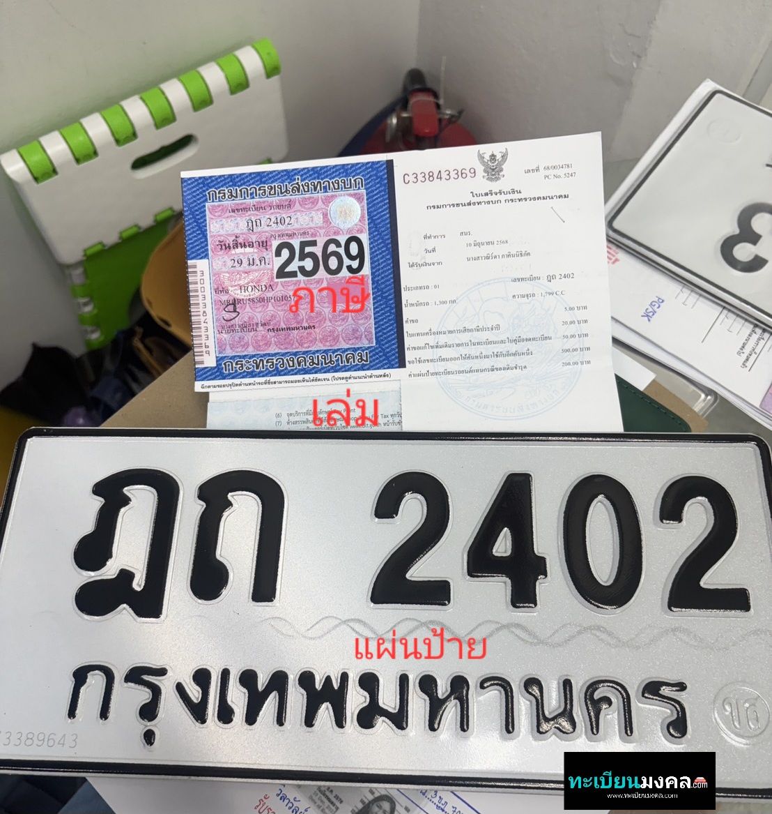- แผ่นป้ายทะเบียนขาวดำใหม่ 2 แผ่น (จากกรมการขนส่ง)